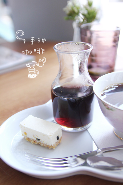 咖啡端上來,很驚豔還有一小塊起司蛋糕。